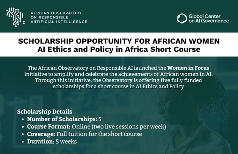 Applications are open for the African Observatory on Responsible AI Scholarship for African Women 2025. The African Observatory on Responsible AI is committed to fostering ethical AI governance across the continent. As part of its Women in Focus initiative, the Observatory is offering five fully funded scholarships for African women to participate in a short course on AI Ethics and Policy.